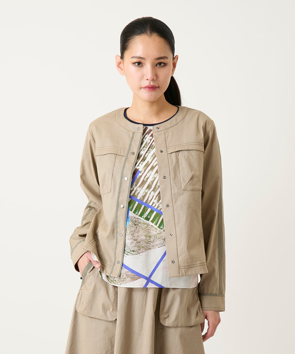 ジャケットはきちんと感をキープしつつ、リネン混素材で爽やかな印象に。今の季節にぴったりの一枚です。