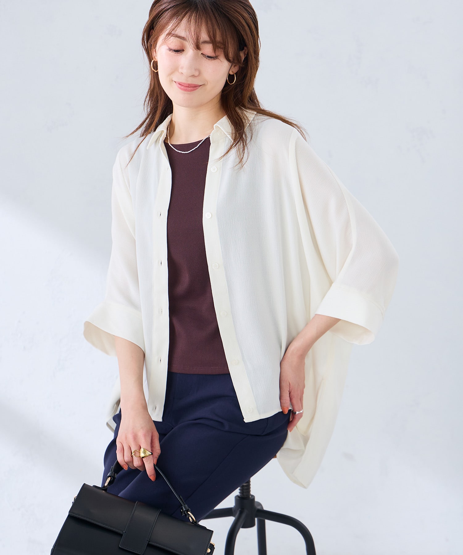 羽織っても、一枚でもサマになる、楊柳素材の着映えブラウス