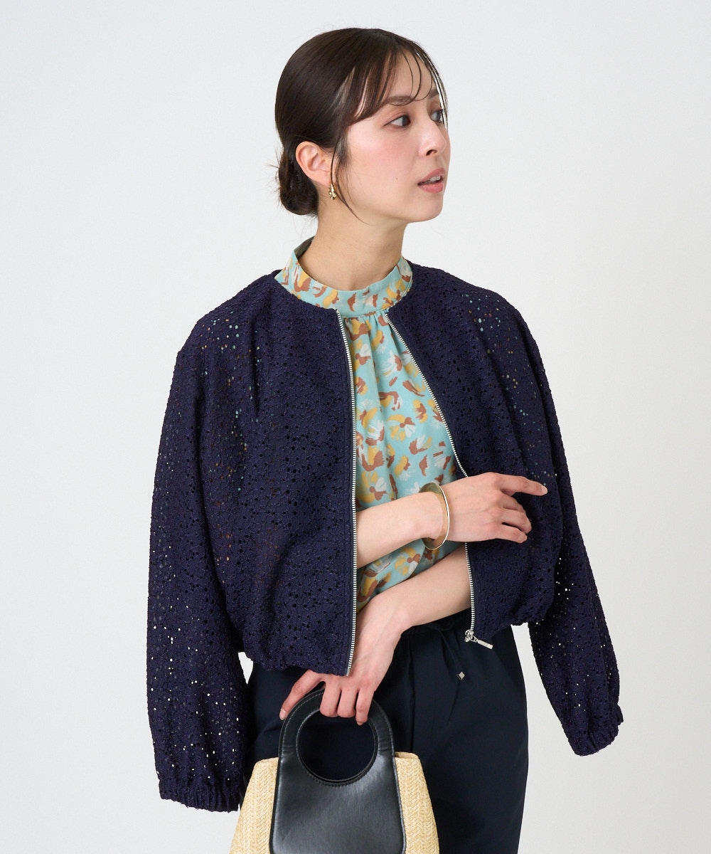 【小さいサイズ】花柄ラッセルレースジップアップブルゾン/洗える