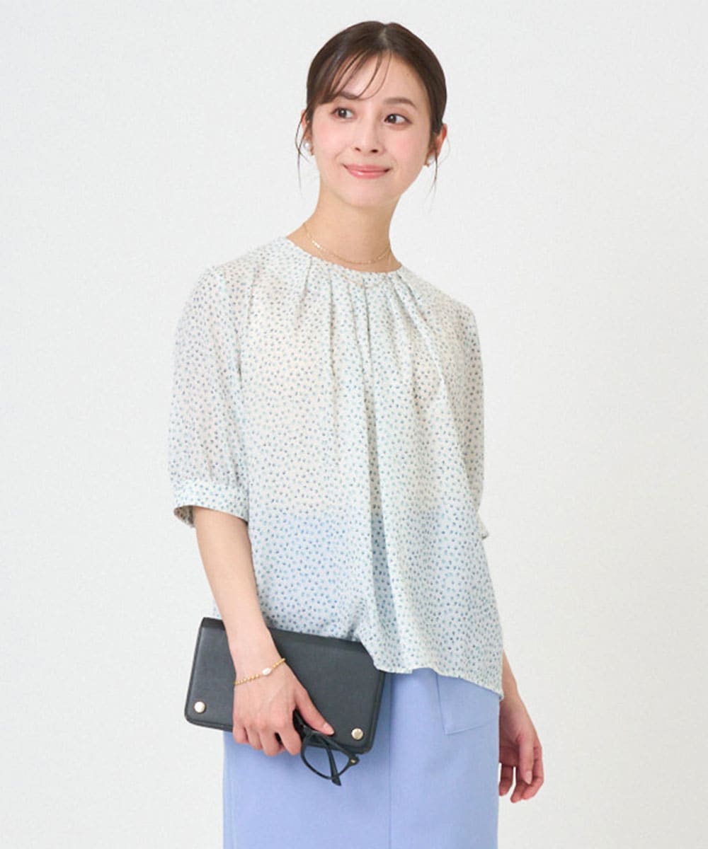 ブラウスは接触冷感、UVカット機能付きで夏まで役立つこと間違いなし。