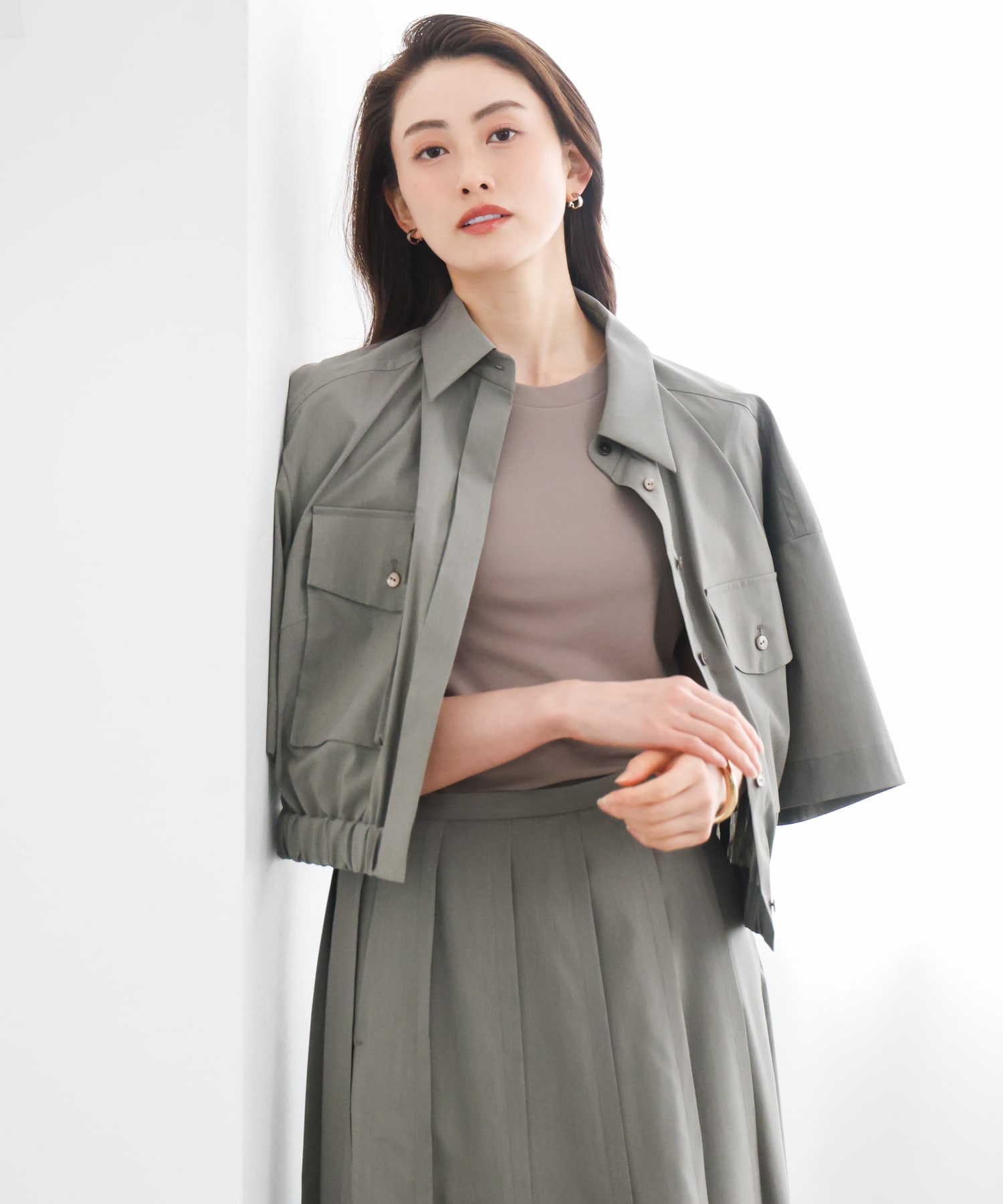 軽やかなコンパクトブロード素材を使用し、程よい艶感とクリアな表面感が洗練された印象を与えるシャツブルゾンはショートな丈感と裾のリブでスタイルアップ効果抜群。