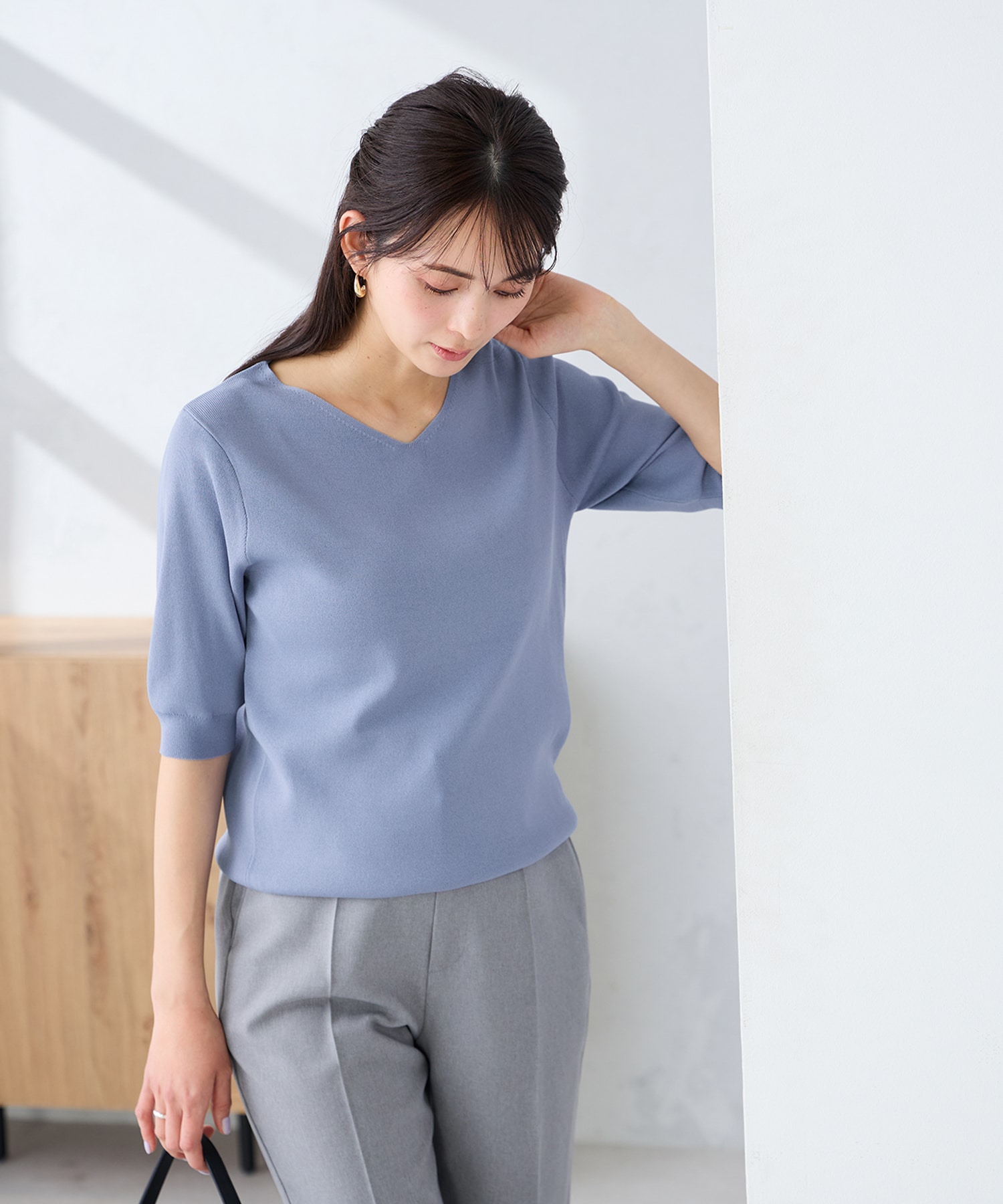 ・ハーフスリーブ Vネックニット