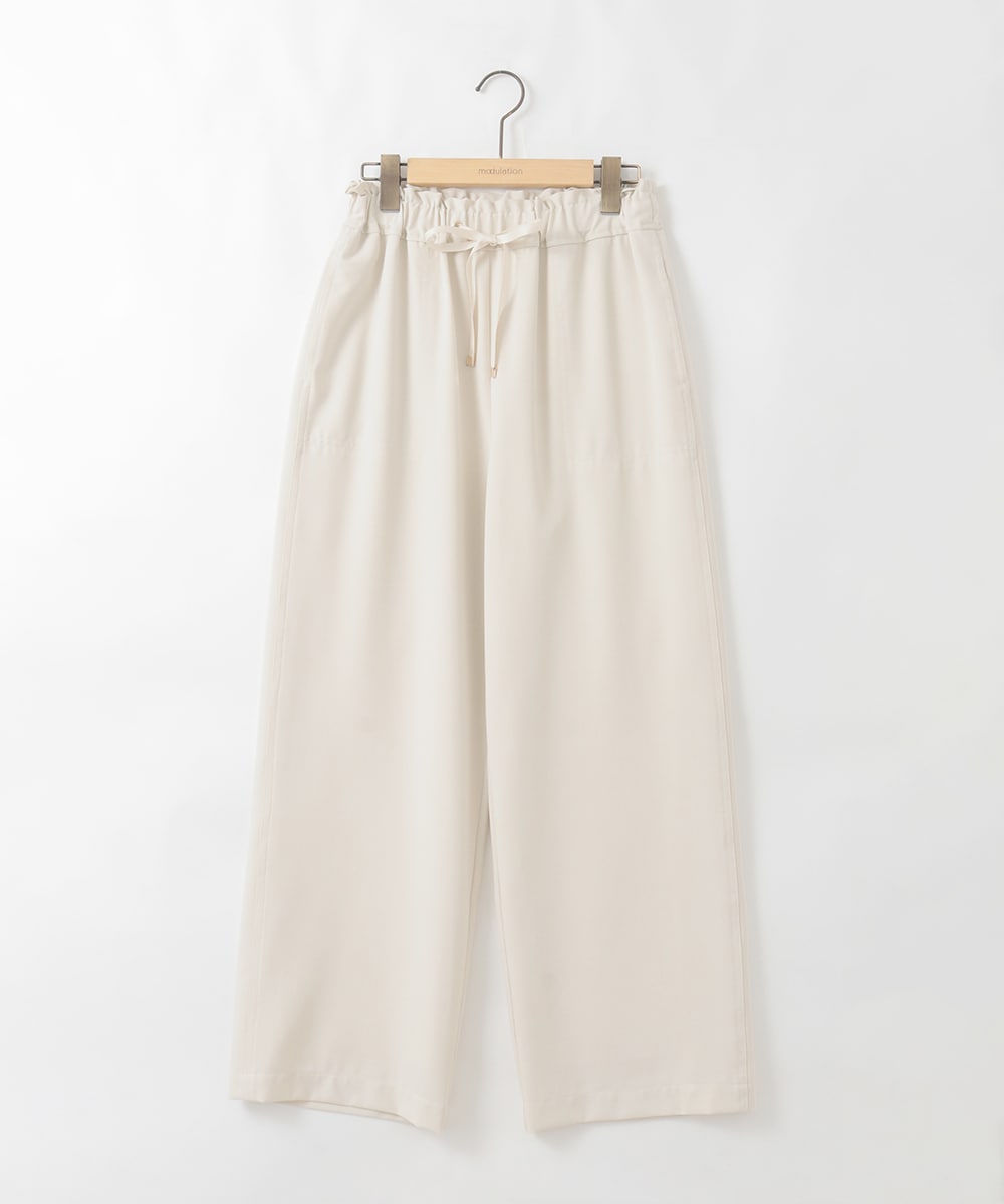 パンツ:シワになりにくいイージーパンツです。ドロストリボンの先にキラリと光る金具付き。ウエスト細い方はリボンで絞って調節できます。