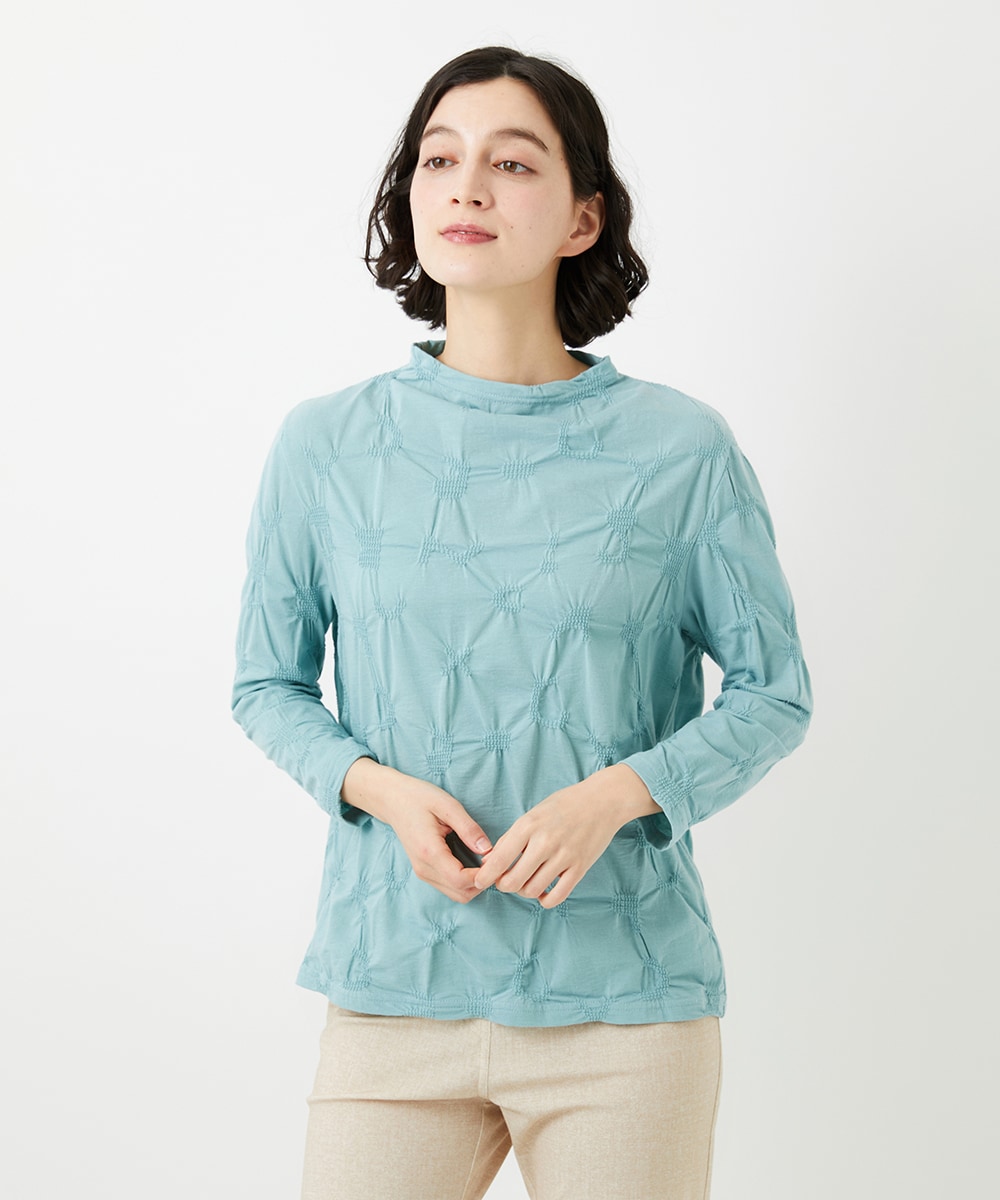 カットソーは、麻混シャーリングカットソーです。