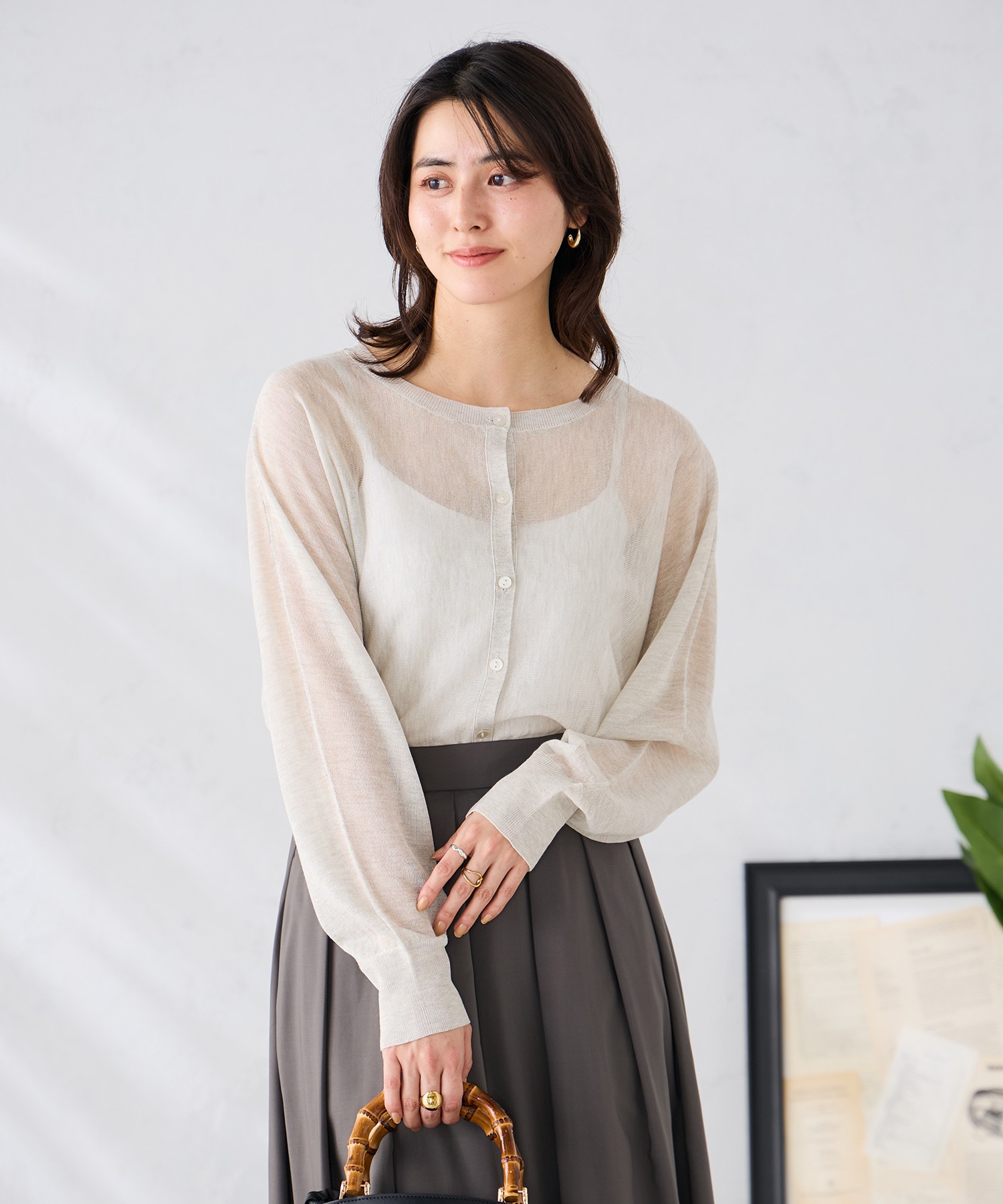 程よい透け感のカーディガン。