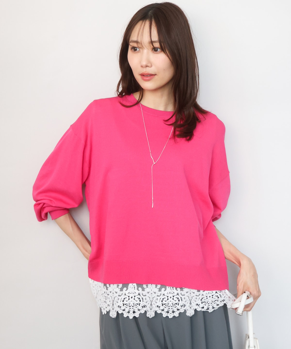 [洗える]ハイゲージニット×裾レースタンクトップセット