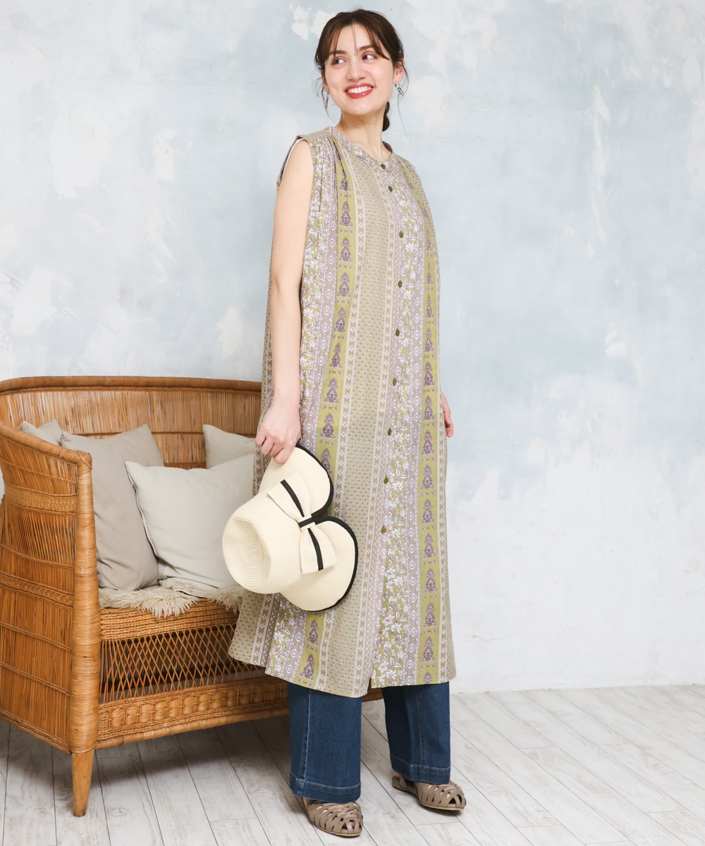 さらっと柔らかなコットン100%素材に、更紗模様のプリントを施した、夏にぴったりのエスニックドレス。