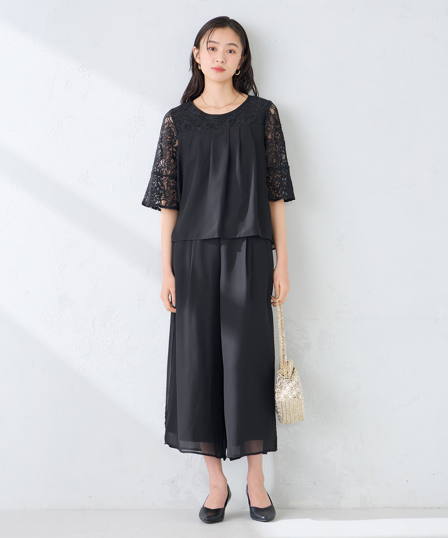 【結婚式/お呼ばれに】レースドッキングブラウス・パンツセットアップ