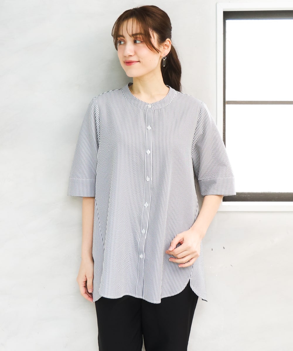 さらっとした肌離れの良いサッカー素材を使用したブラウス。