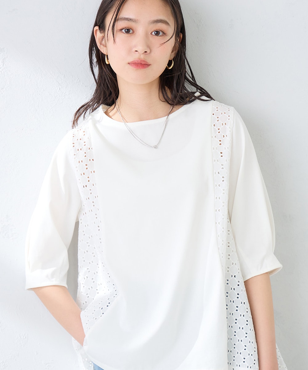 ・レース切替Aラインカットソー