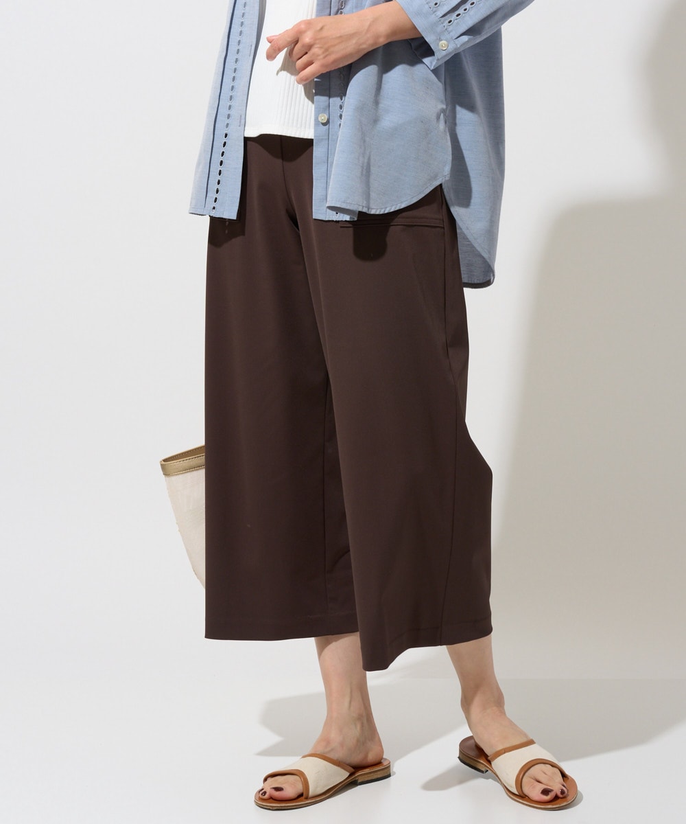 前中心のシンプルなデザインとウエストのイージー仕様で、快適に着こなせます。