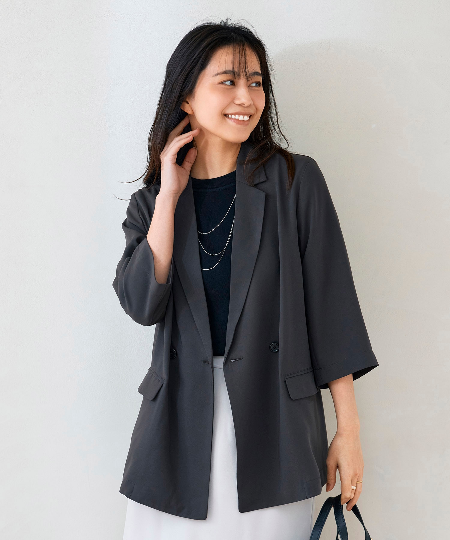 ジャケットは、ヒップが隠れる安心の着丈です。