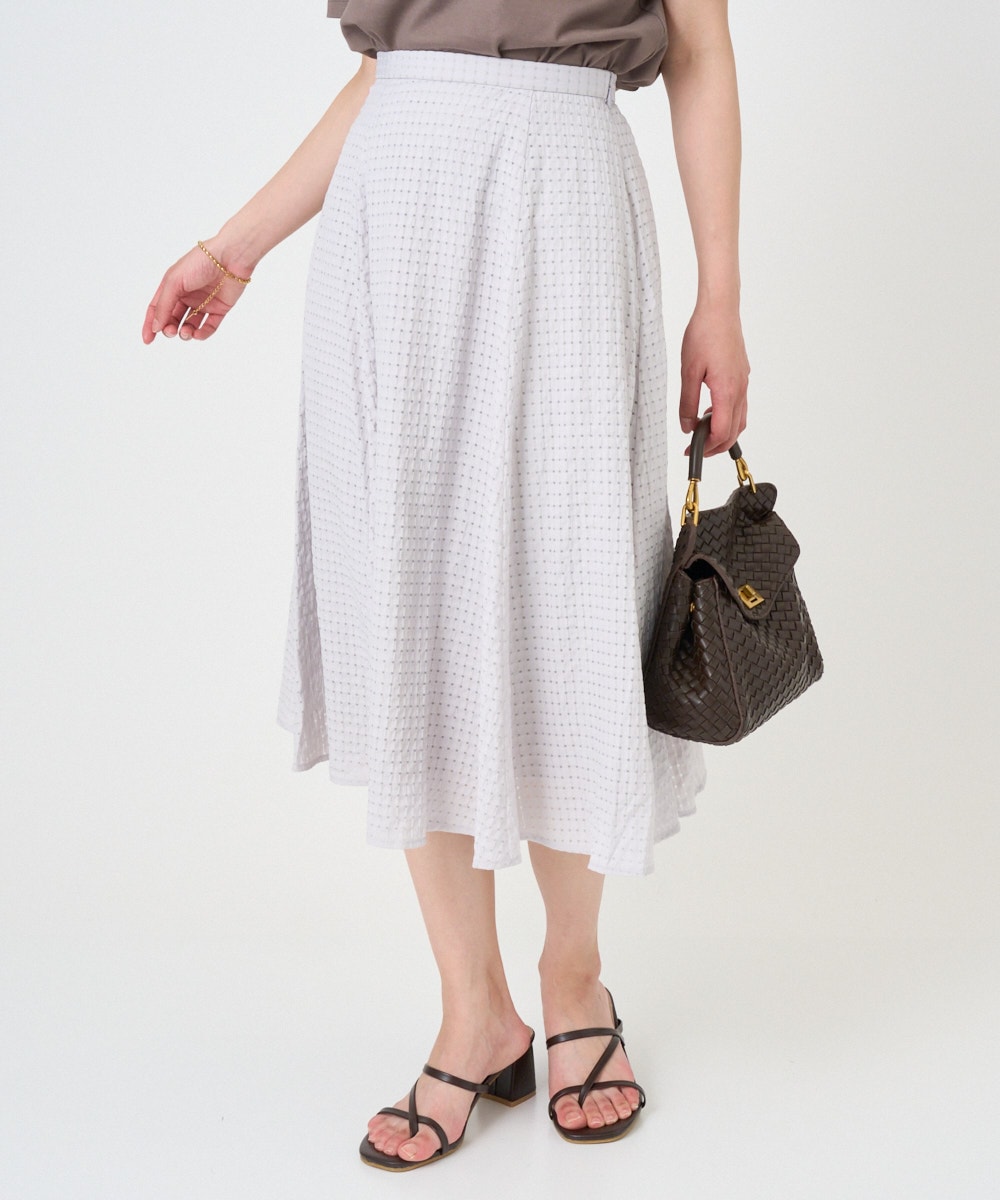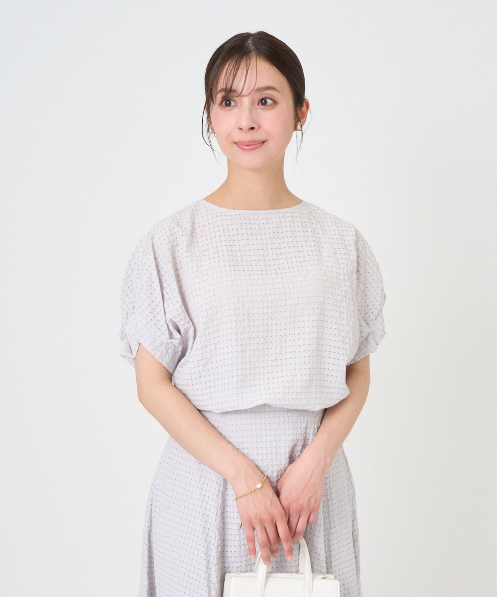 シアーな素材とチェック柄が涼しげで、大人の女性らしい洗練された雰囲気を演出。