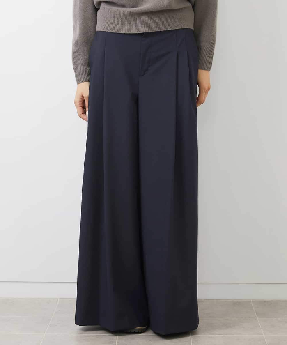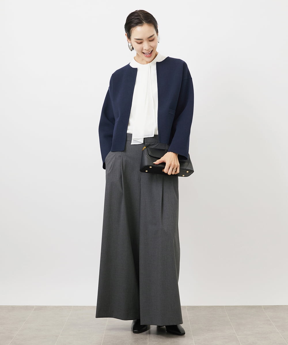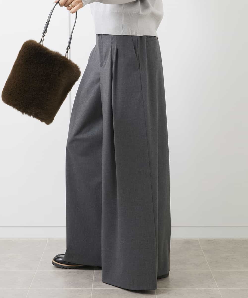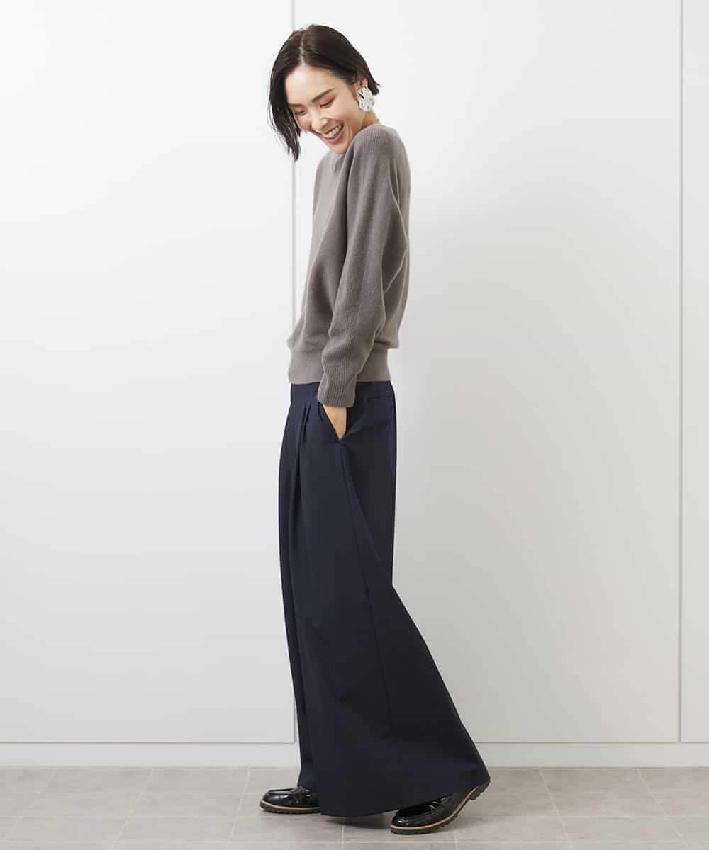 すっきりとした縦長シルエットを意識したワイドパンツ