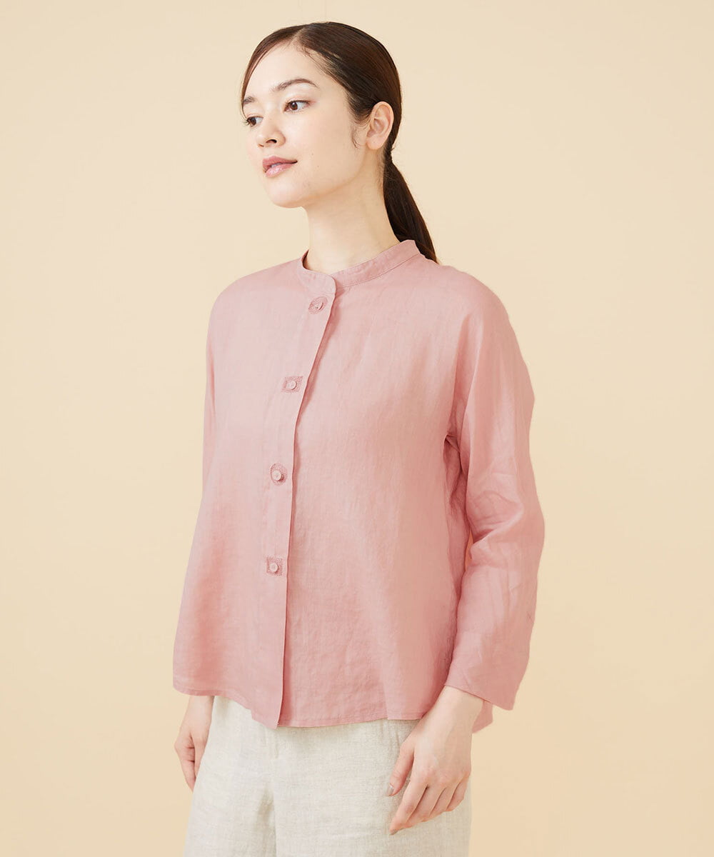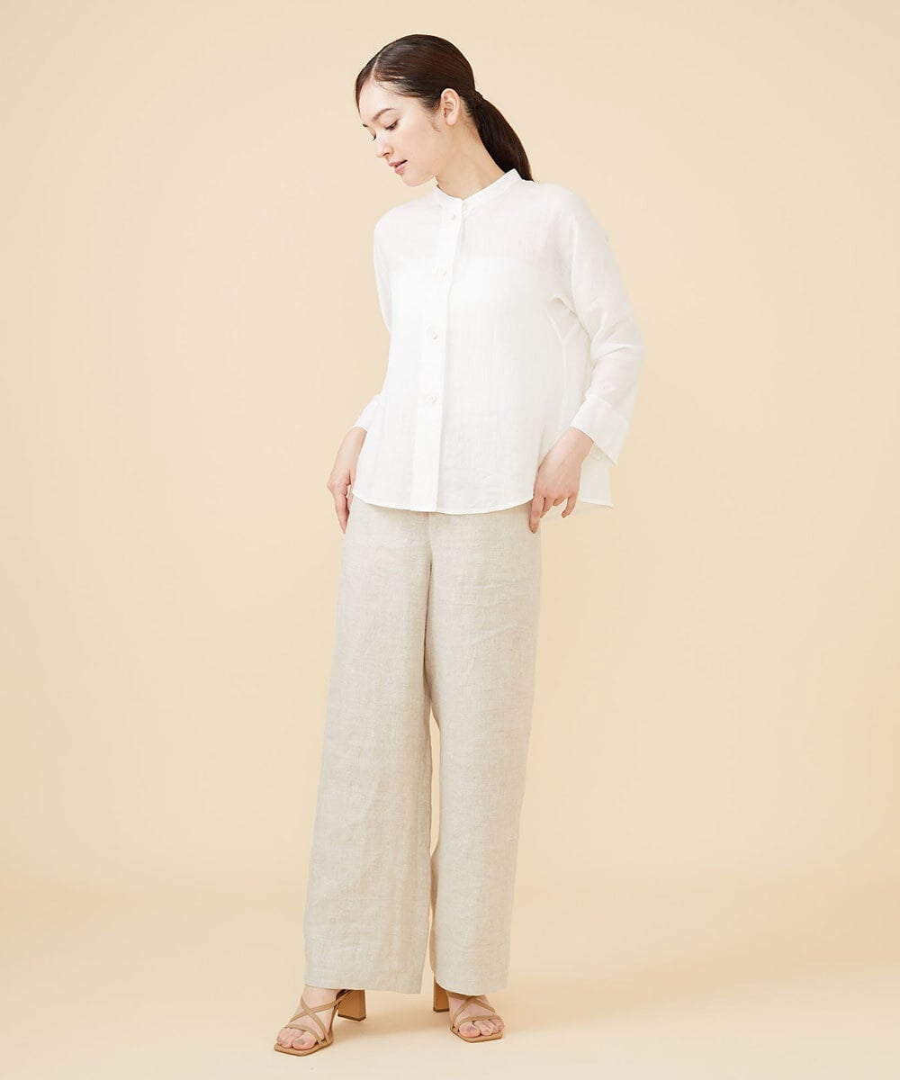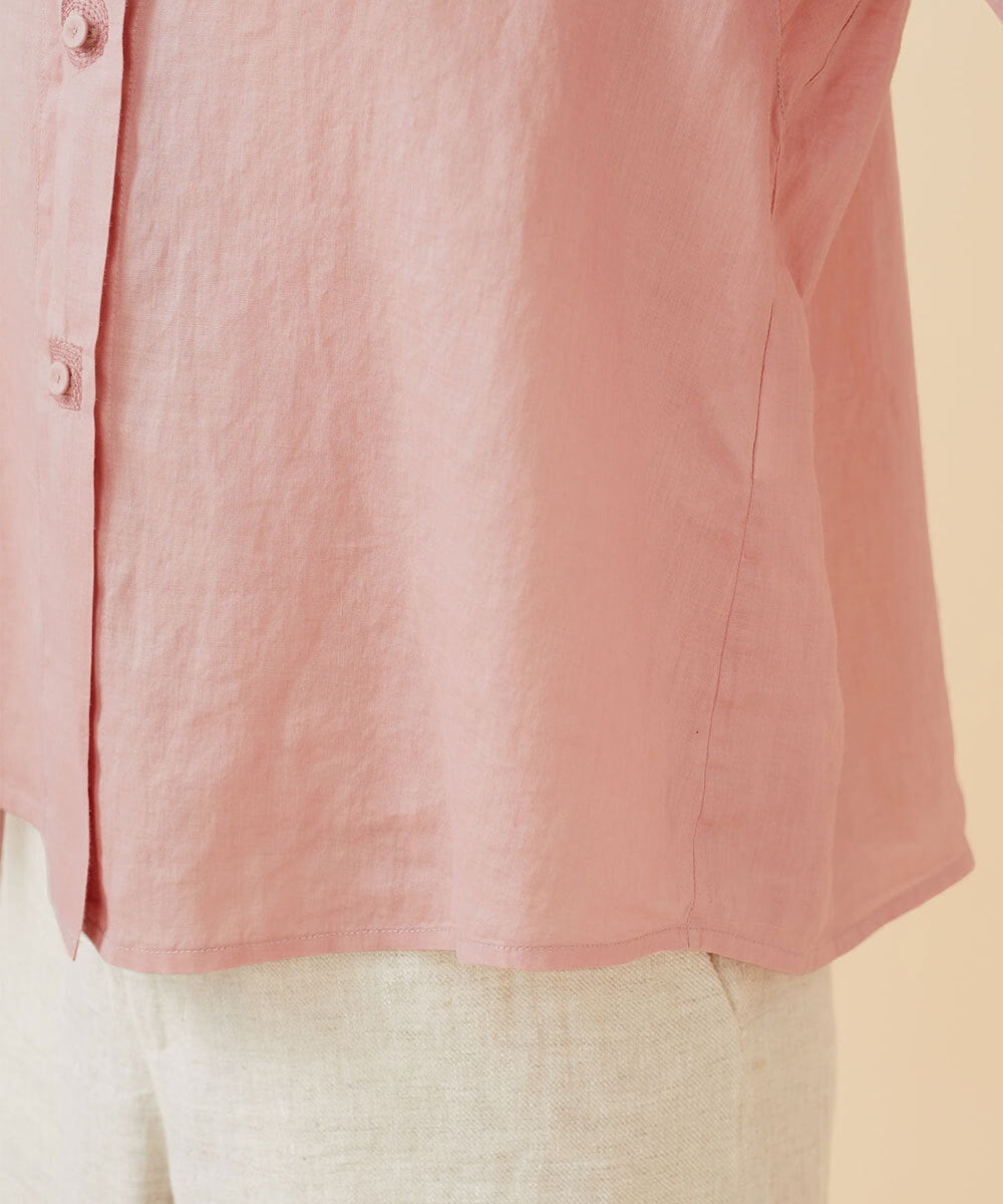 生地アップ:細番手のリネン糸で織られた平織のローン生地を使用。