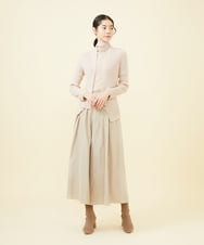 ニット素材アップ:肌触り柔らかなウール100%素材を使用。上品な落ち感としっとりとした風合いが魅力です。ストレッチ性に長けたリブ仕様です。