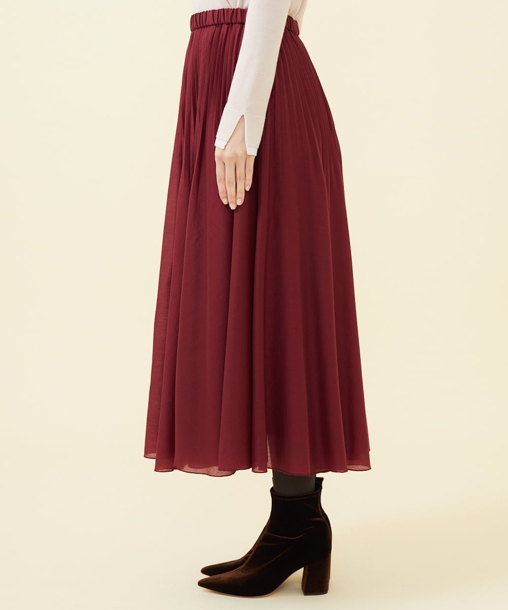 生地アップ:シーズンレスに着られるよう開発したテンセル混の素材。 しなやかな中にも適度なハリ感があり、優雅なフレアーを演出します。