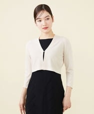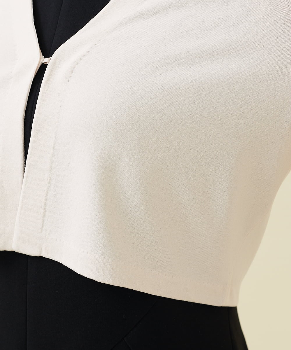 ニット素材アップ:レーヨンとナイロンを混紡したストレッチ糸を使用。 さらりとしながらシルキーな肌触りで、ロングシーズン活躍します。