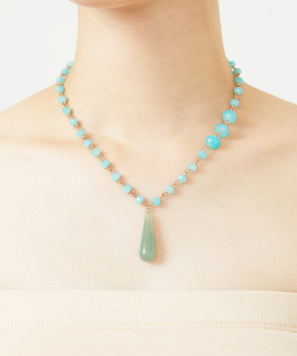天然石のスリムなドロップ型トップパーツがアクセントのネックレス。