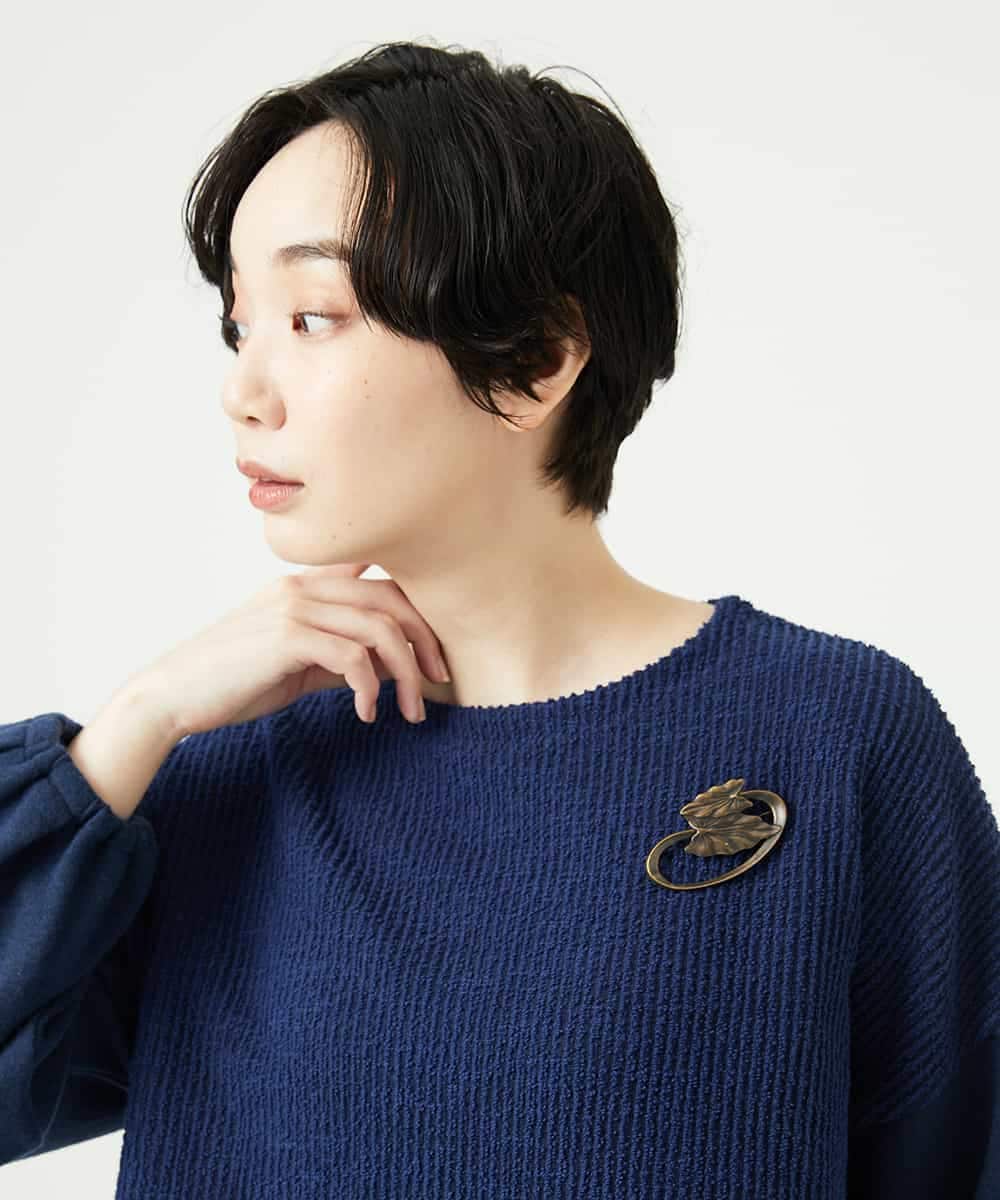 リーフ柄をモチーフにした大き目のトップがポイント。ネックレスとして胸元を着飾ることができるのはもちろんこと、ネックレス紐を外してブローチとしても着用できます。
