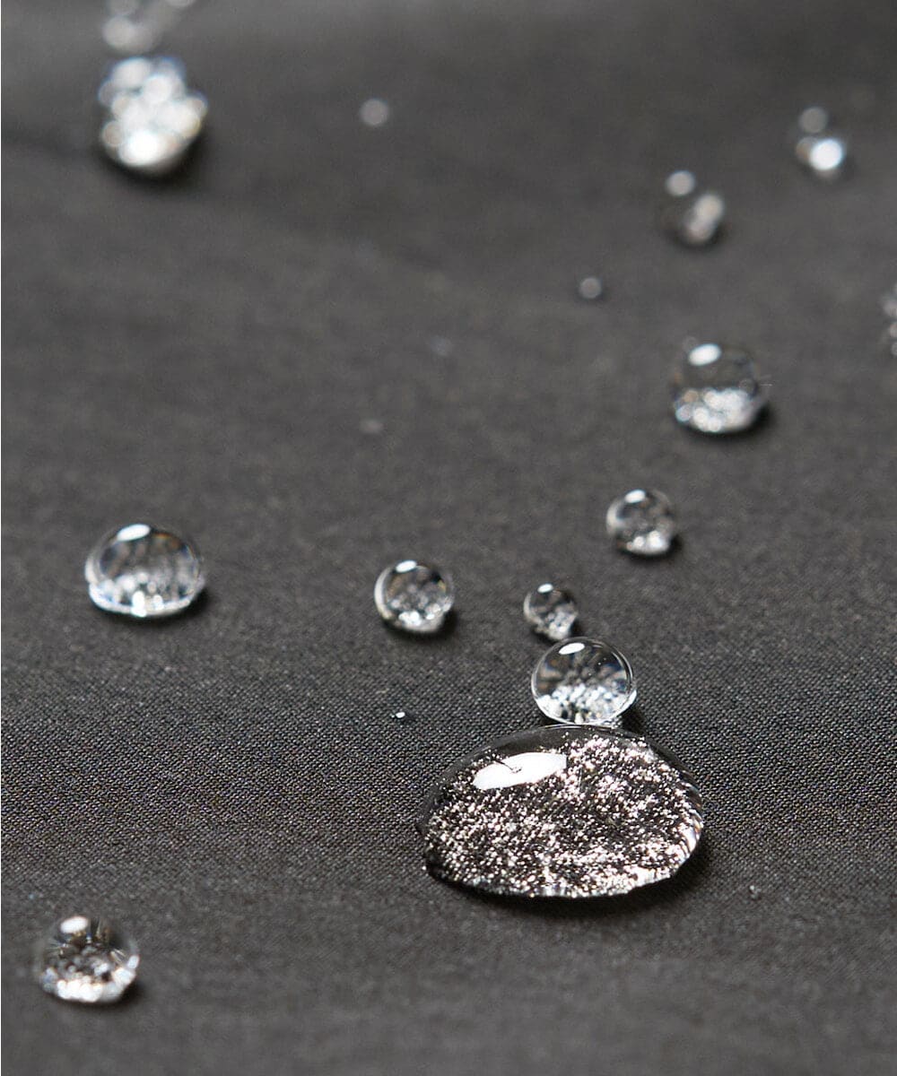 撥水加工の素材を使用しています。撥水加工は洗濯耐久性があるので洗濯後でも効果が持続します