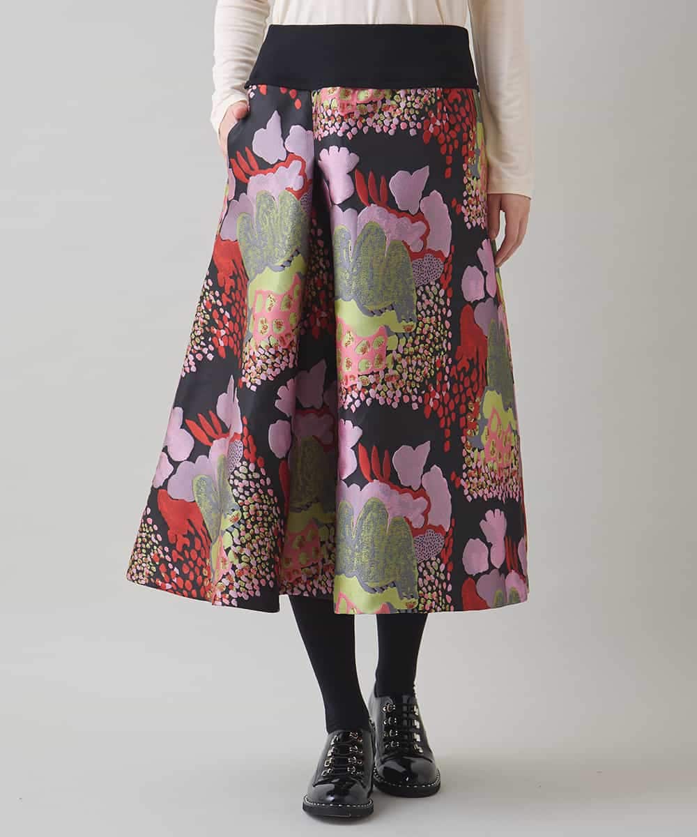 発色の美しさが絵画柄を引き立てる、ジャカードで仕立てたデザインスカート