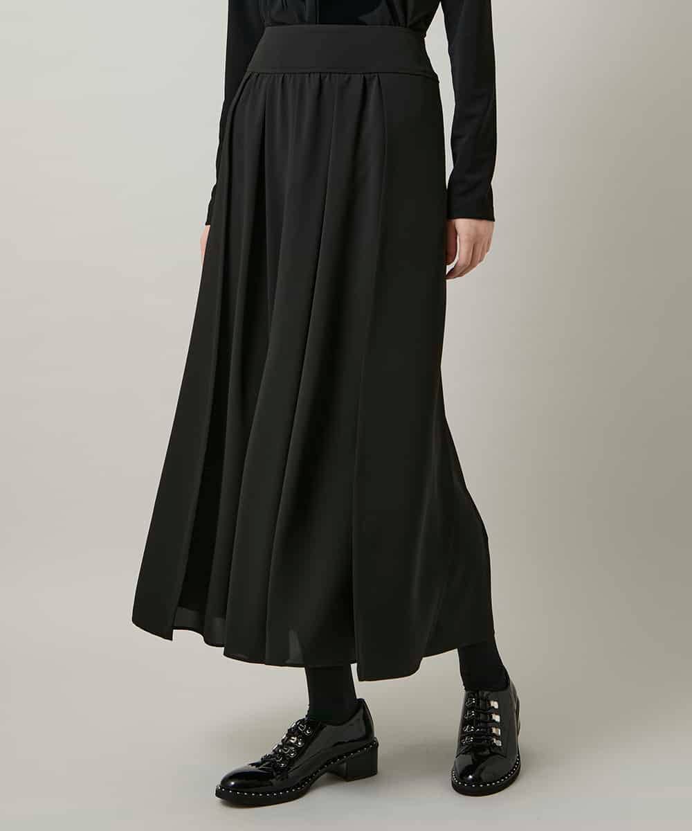 RHHCD35490 HIROKO KOSHINO(ヒロココシノ) 異素材コントラストスカート/日本製/洗える ブラック