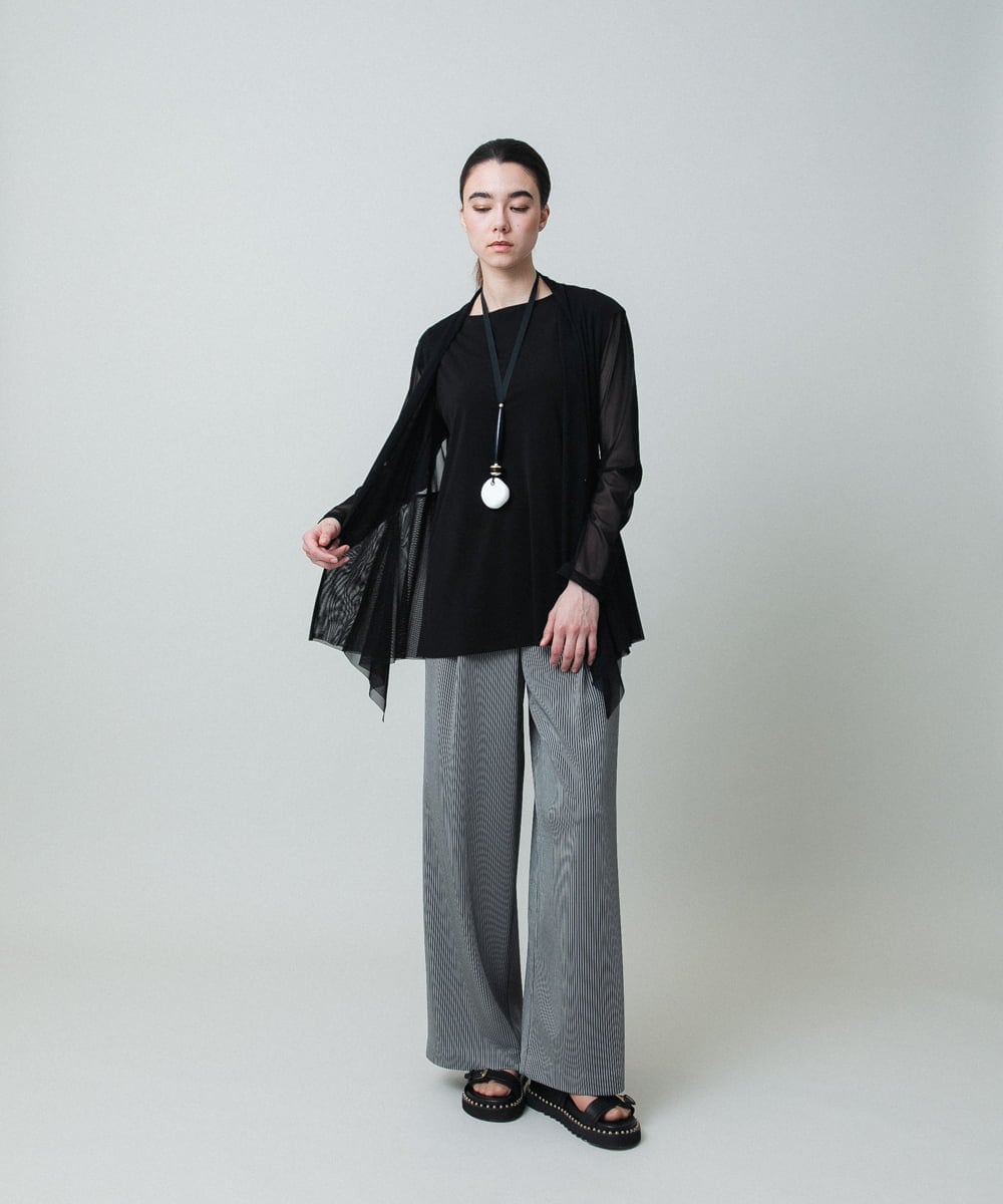 RHQGA03540 HIROKO KOSHINO(ヒロココシノ) ストライプジャージーシルエットパンツ /日本製/洗える ブラック