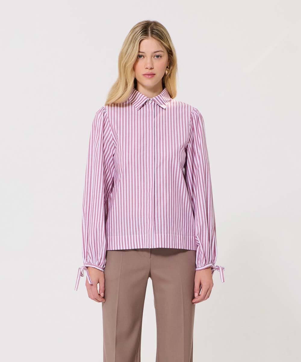 ◆デザイン◆絶妙なローズカラーのストライプがインポートらしいブラウス。