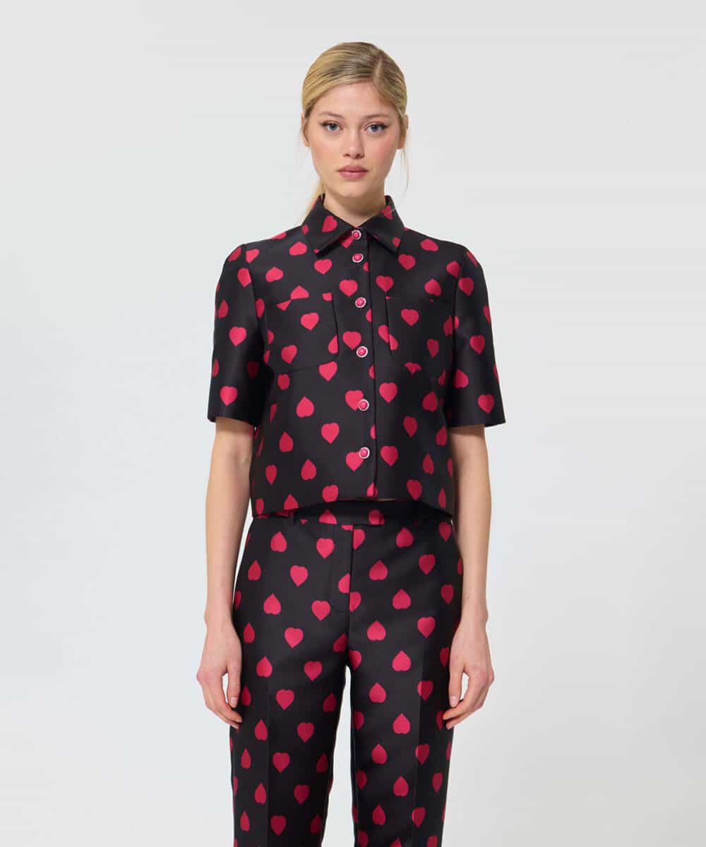 ◆デザイン◆ハートプリントが目を惹くジャケットライクなブラウス。