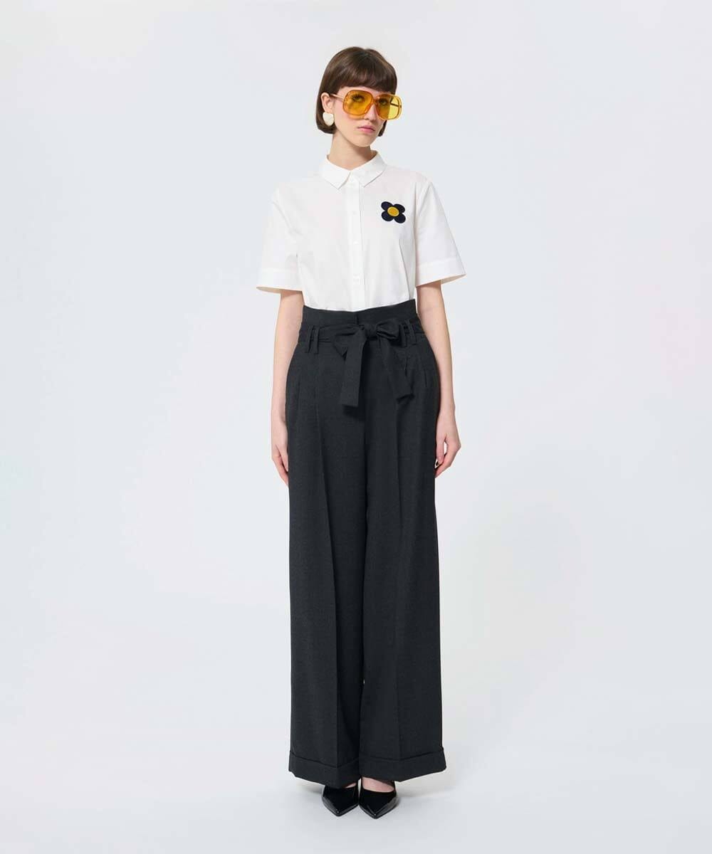 ツータックデザインでお腹周りをカバーし、同素材のリボンベルトがスタイルアップを叶えます。