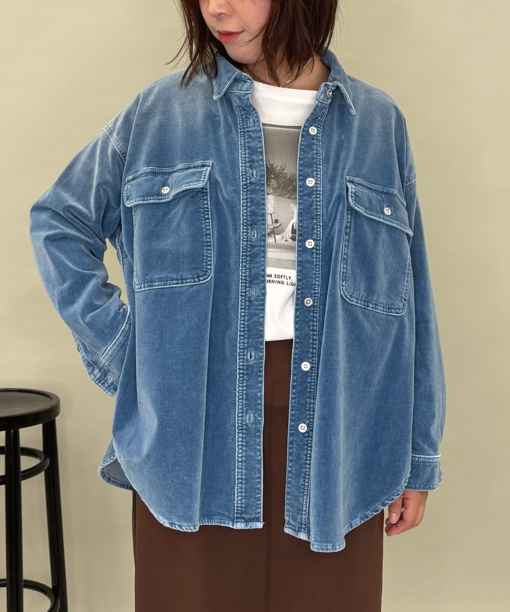 ZMBAE31190 al'aise modulation(アレーズモジュレーション) デニムカラーベロアデザインシャツ ライトブルー