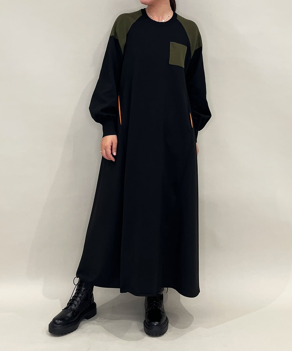 ZMEAE31170 al'aise modulation(アレーズモジュレーション) 【洗える】異素材MIXワンピース ブラック