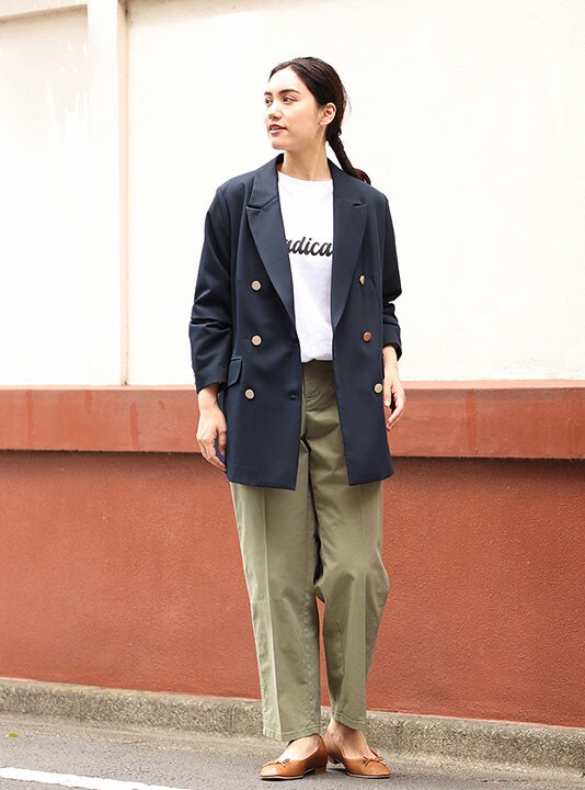 きちんと見えのテーラードジャケットもカジュアルなコーデに取り入れるだけで一気にこなれた印象に。