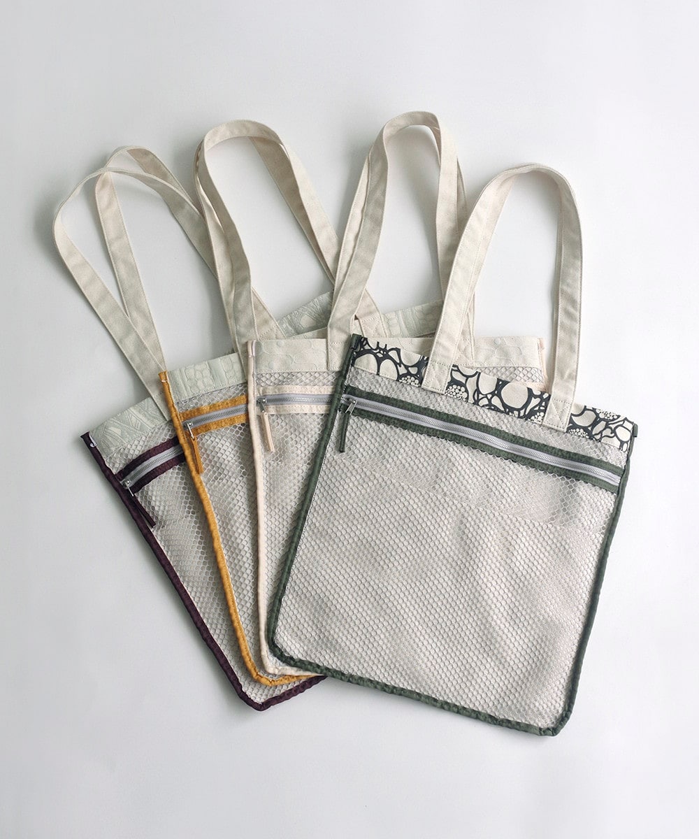 レジャーシートなどに使われる汚れに強い生地でできており、耐水・防水性が抜群。ほどよい透明感のバッグにお気に入りを詰め込んで、自分だけのオリジナルバッグ仕様を楽しめます。