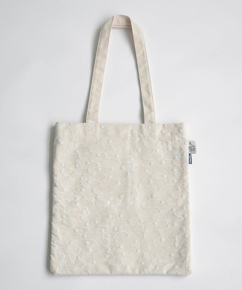 細胞壁と呼ばれる殻と丸い細胞の核を表したデザイン。全面ホワイトでシンプルながらも、表面の凹凸がさりげない個性的なおしゃれを演出します。
