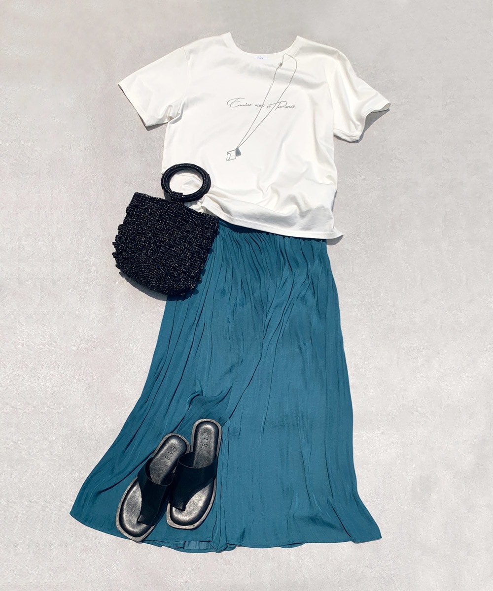 カラーフォトTは女っぽボトムで甘辛ミックスコーディネート