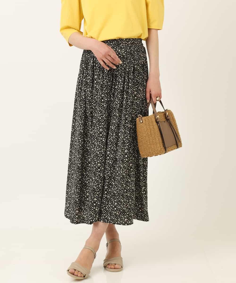ブラック×アイボリーのベーシックカラーなフラワープリント柄。