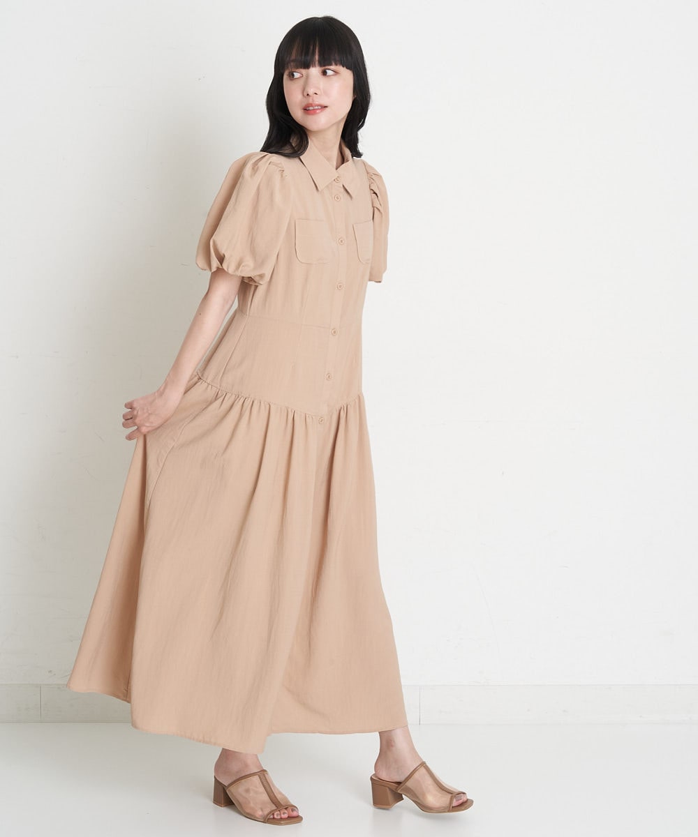 麻のようなさらっとした素材感で、シンプルかつ上品な一着。