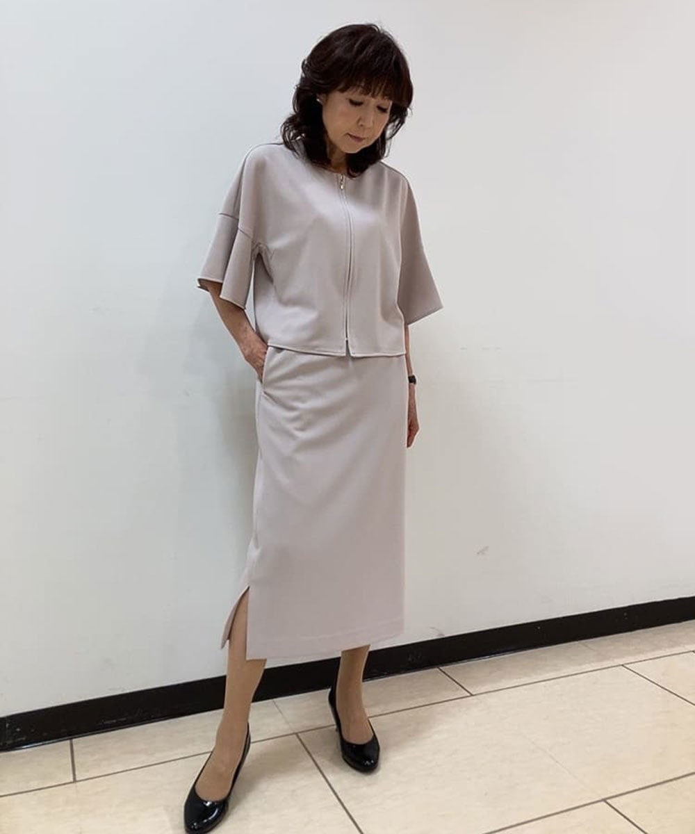 マーメイドラインのスカートは女性らしいシルエットで上品な印象に。