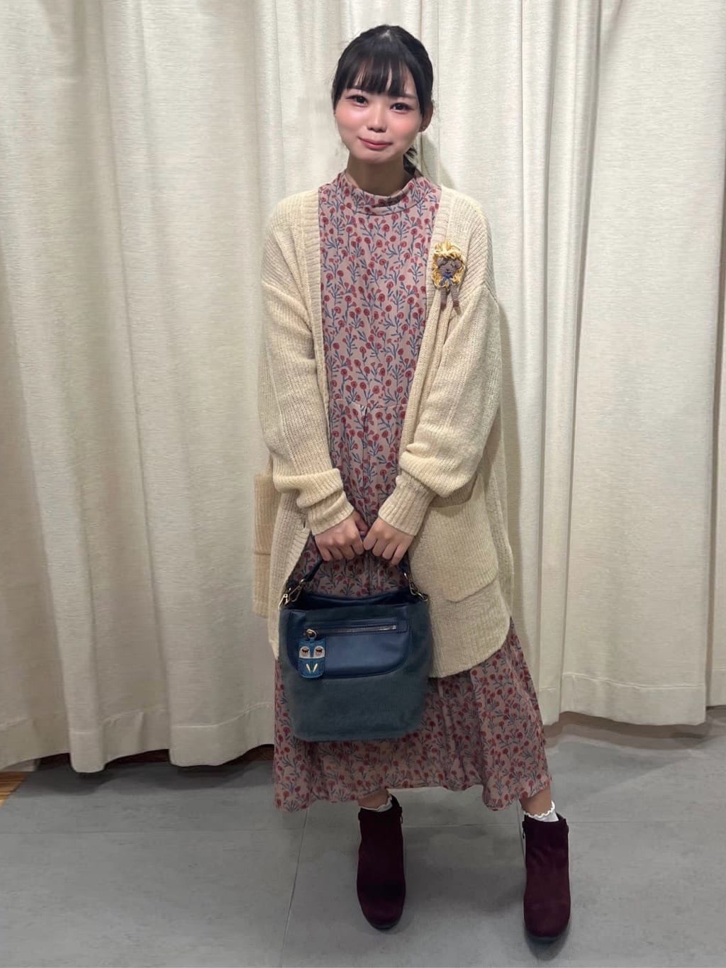 同シリーズのカーディガンを合わせたクラシカルな雰囲気のコーデ。