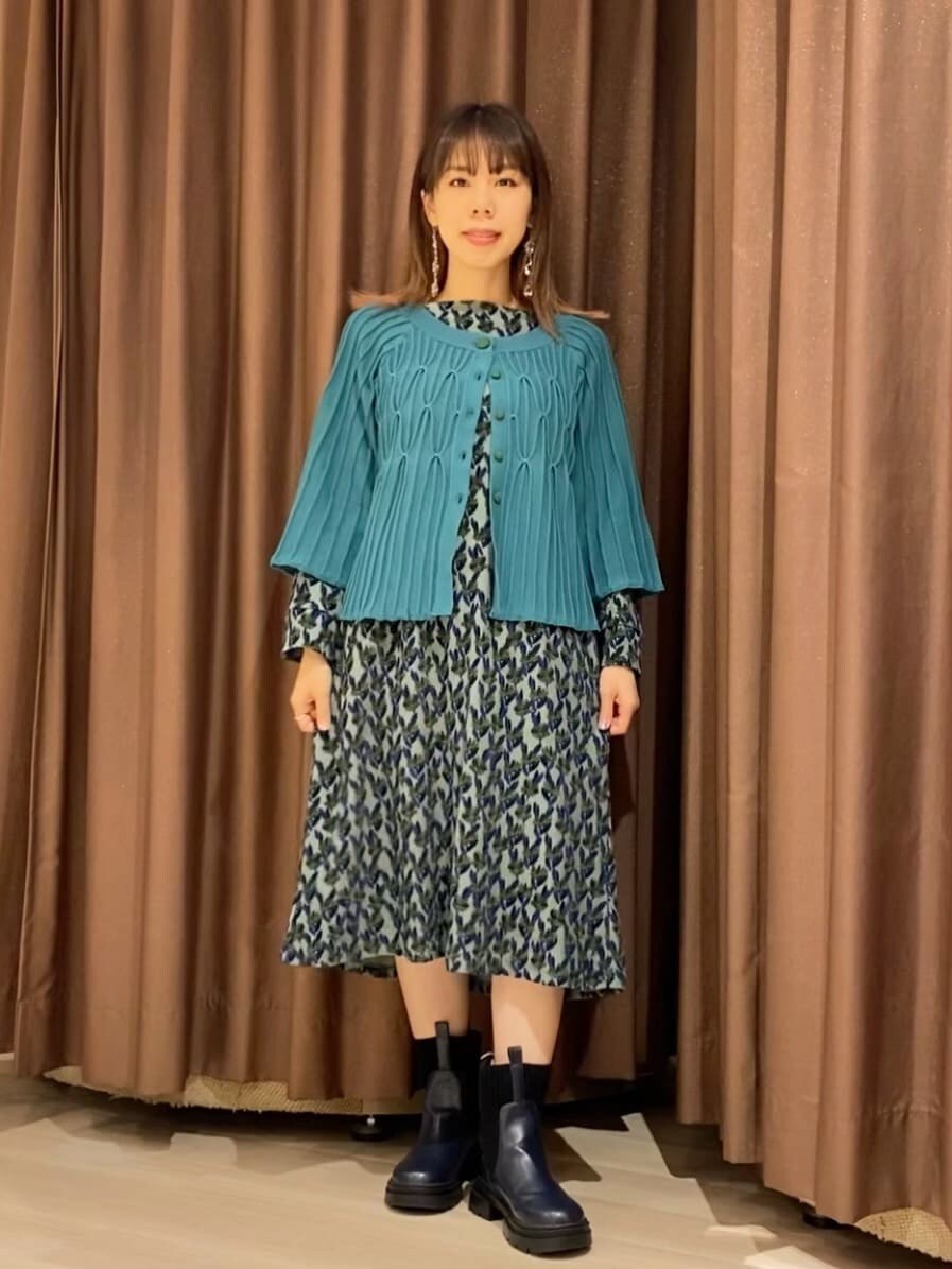 ブルー系でまとめたコーデ。ワンピはもちろん、カーデも春先にも着やすい素材なのでセールでの狙い目アイテムです!