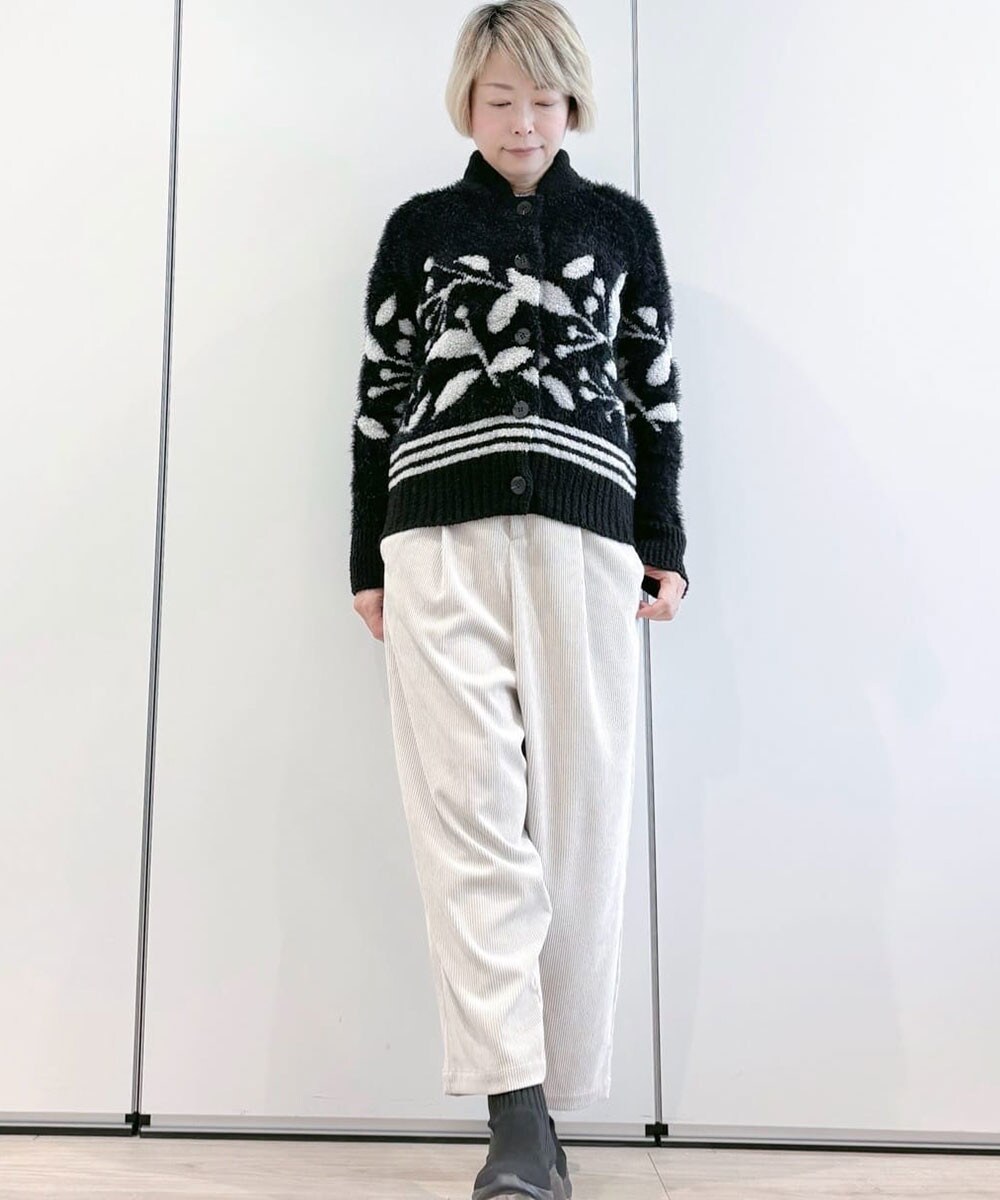スカート、ワンピースとも好相性でニットコートとしても活躍します。