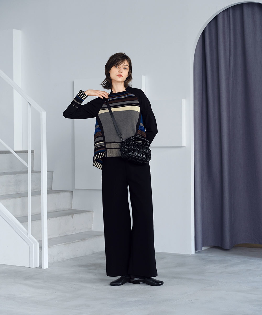 様々なボーダー柄をジャカードで遊び心たっぷりにアレンジしたニットは、今どきなリラックス感が漂うゆとりあるシルエットで。
