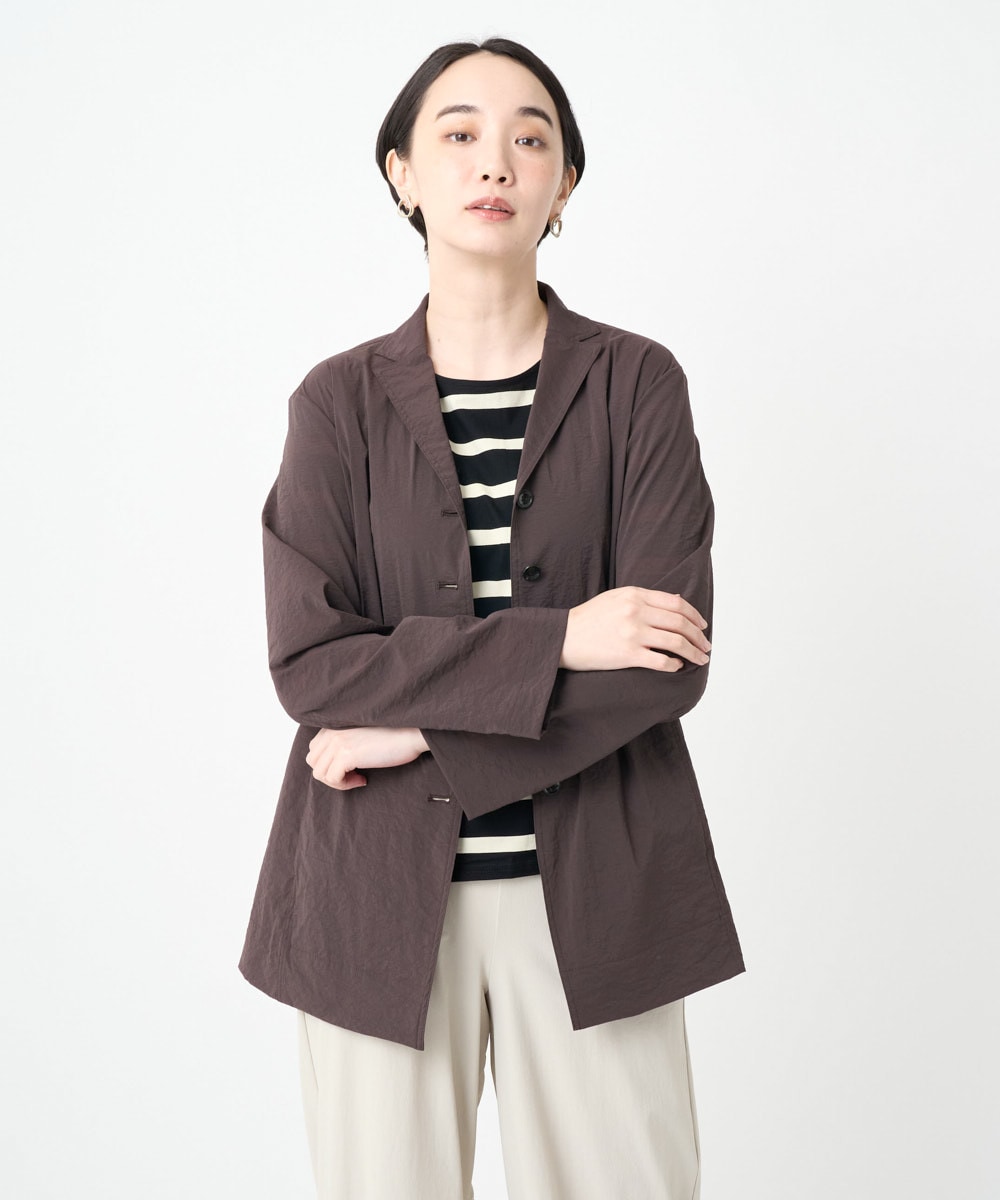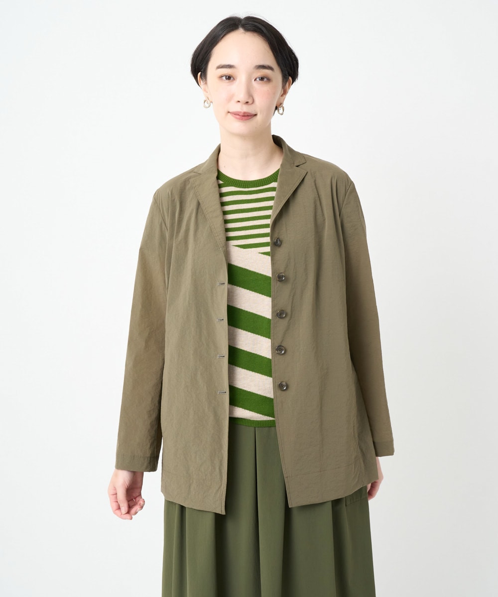 ベーシックラインでのシンプルな一重のライトジャケット。マットな表情でお出かけや通勤など幅広いシーンで活躍するアイテム。