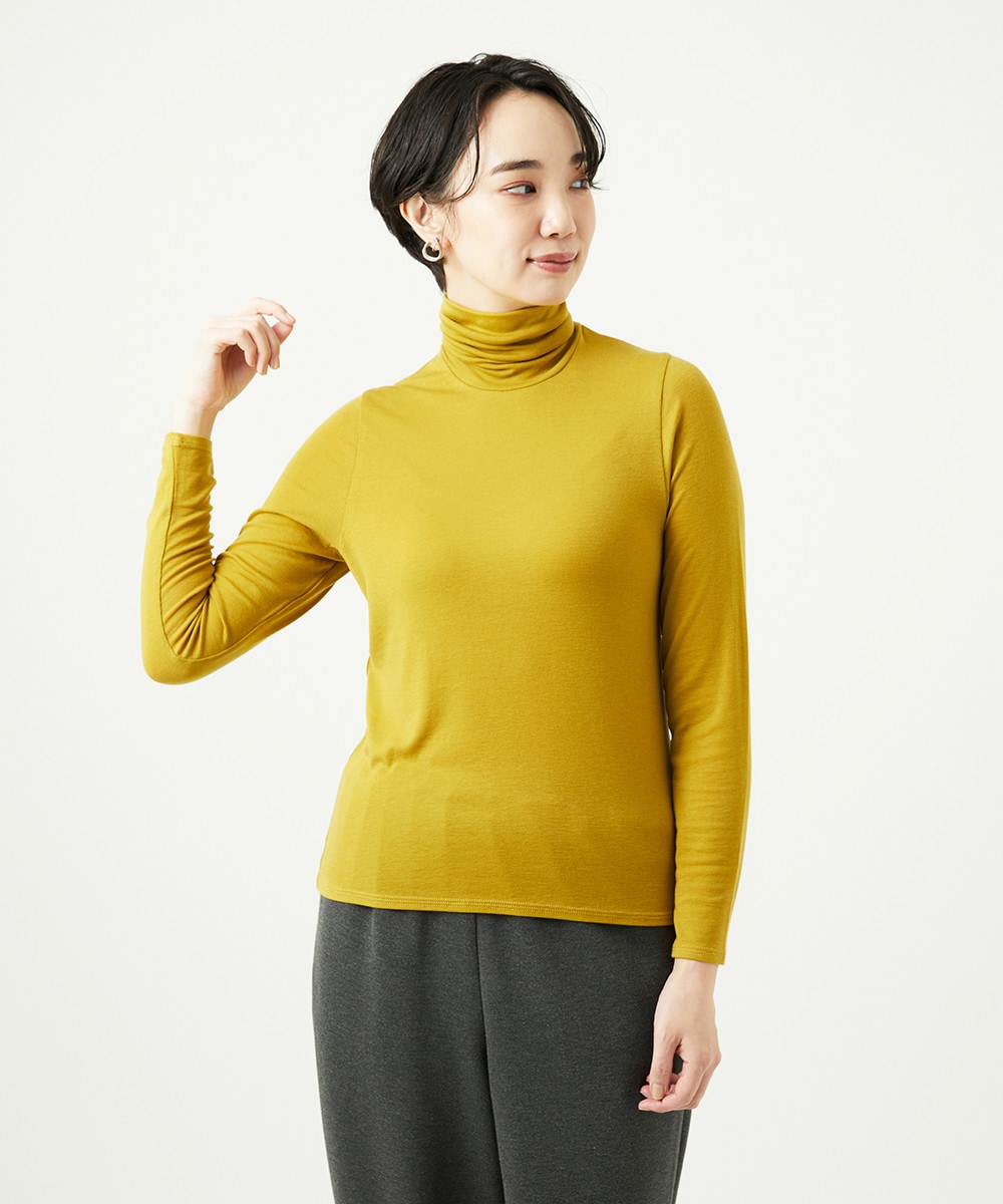 人肌から蒸発してしまう水分を利用して発熱し、保温する機能を持つ素材を使用。丸みがあって楽ちんな着心地ながら、きれいなシルエットを表現。