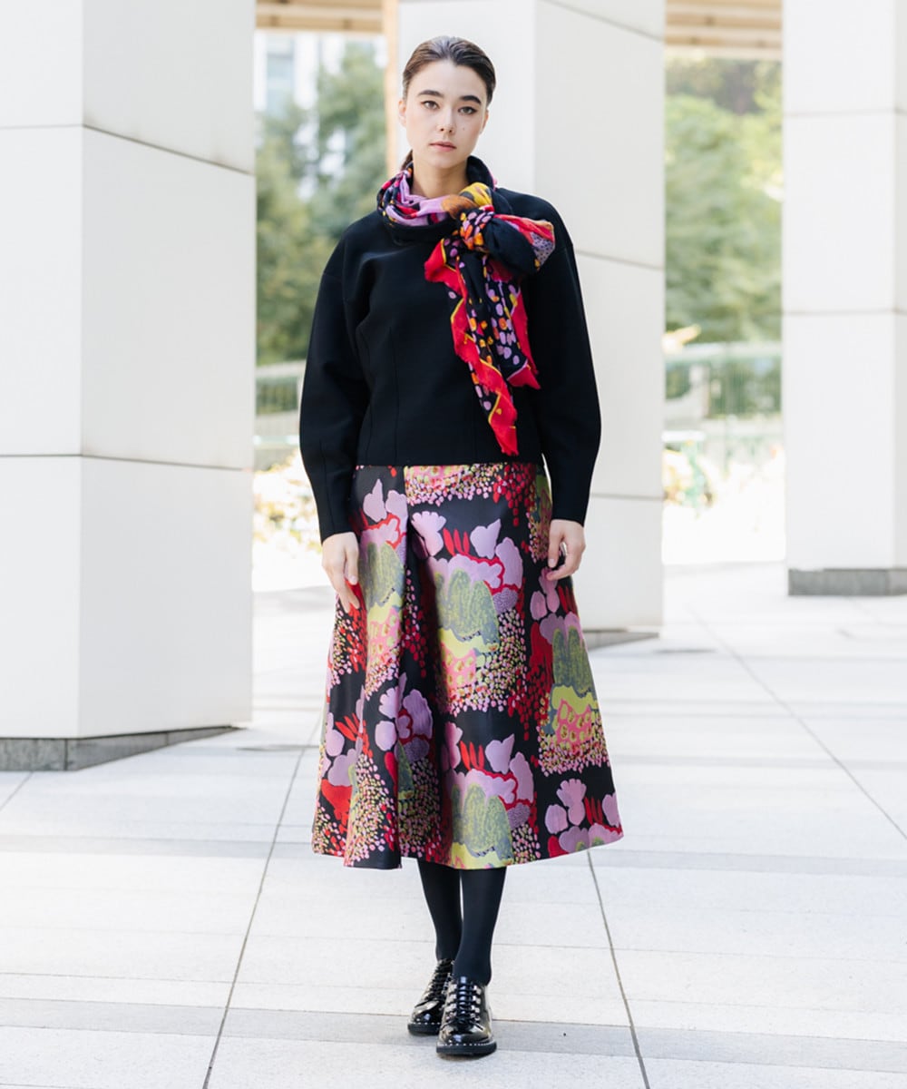 オリジナルの絵画を発色の美しいジャガード織りで表現した他にはない特別なスカート。