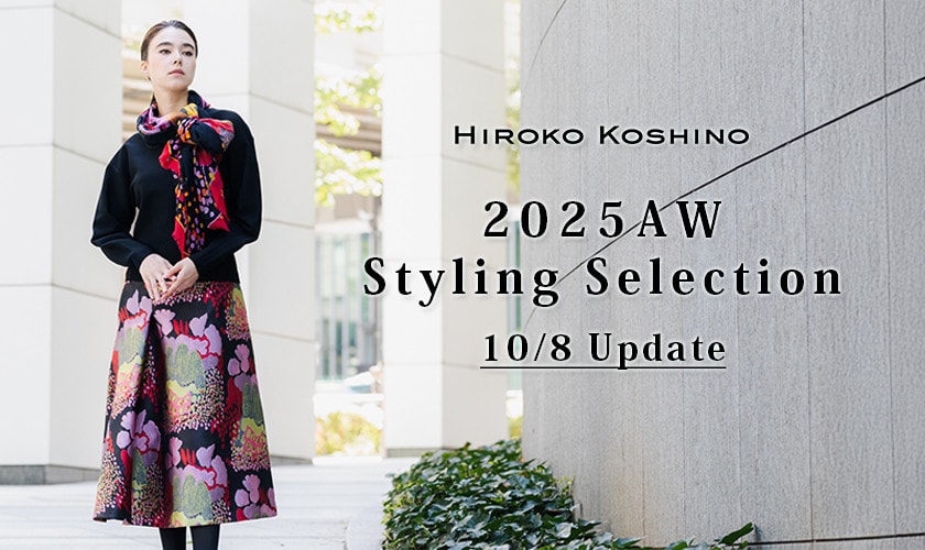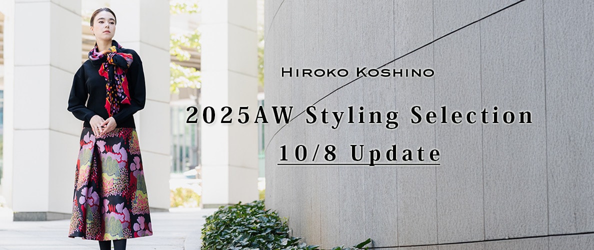 袖から後ろ衿まで続けたディテールも立体感があり、ヒロコらしいモード感と個性を際立たせるデザインに。