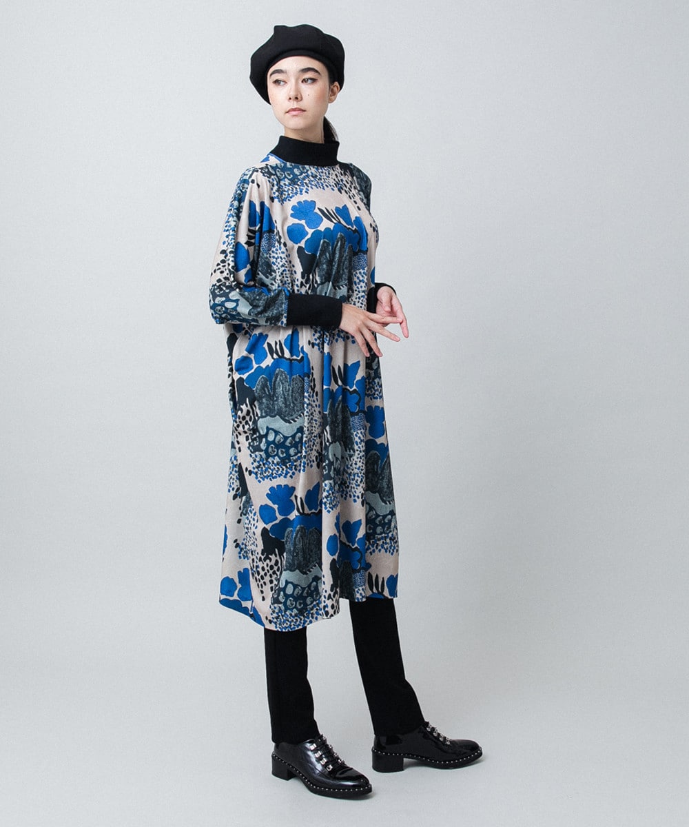 重くなりがちな秋冬スタイルには、大胆なアートプリントでパッと目を惹く華やかなワンピースを。