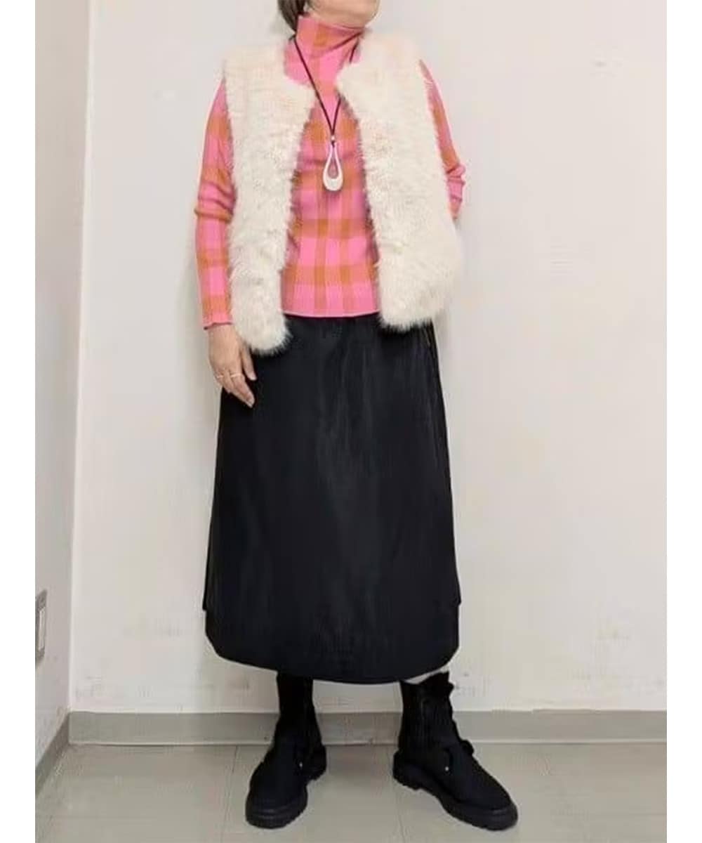ファーのジレを合わせて旬のカジュアルなスタイリングにしました。